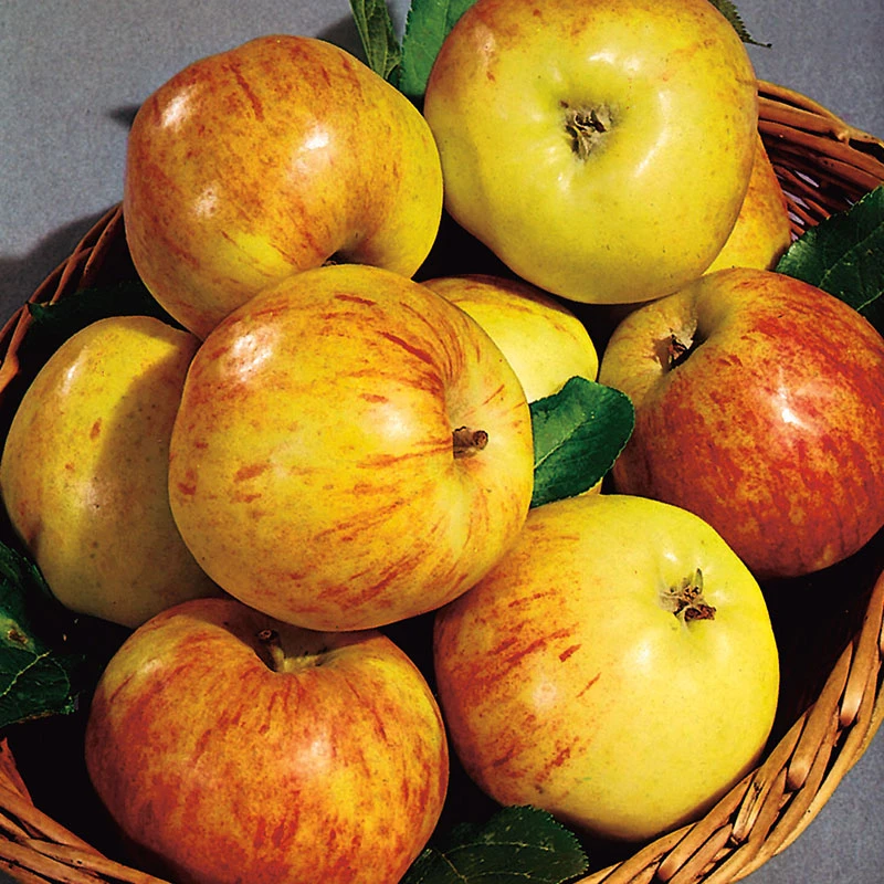 Gravensteiner ger stora, saftiga frukter med ett härlig sötdoftande och glansigt skal.