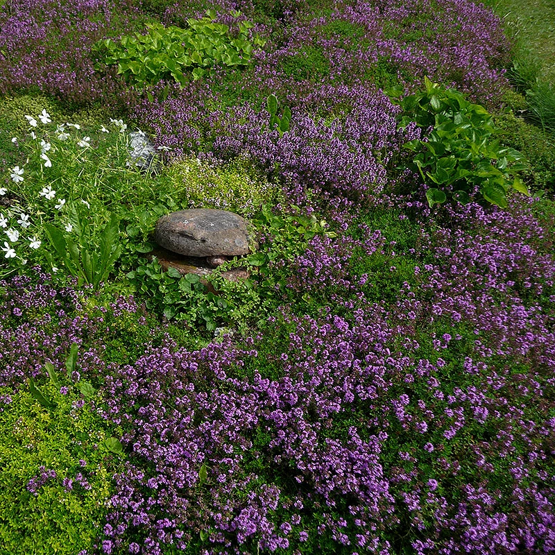 Timjan Àr en mycket trevlig marktÀckare eller utfyllnad i krukor. Dess Àtbara funktionalitet tillsammans med dekorativa mörkgröna smÄblad gör den mycket odlingsvÀrd likvÀl pÄ balkongen som i trÀdgÄrdsrabatten.