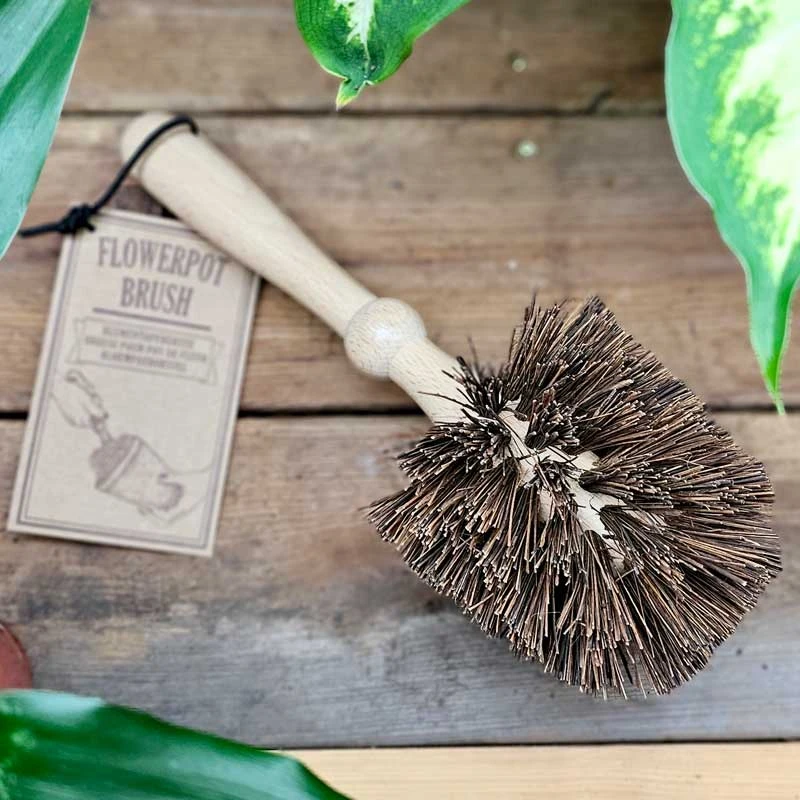 Med denna blomkrukborste kan du rengöra blomkrukor pÄ ett smidigt sÀtt. Borsten med praktisk lÀderupphÀngningsslinga passar för rengöring av krukor med en diameter pÄ 12 cm eller mer. Rem i lÀder för upphÀngning.