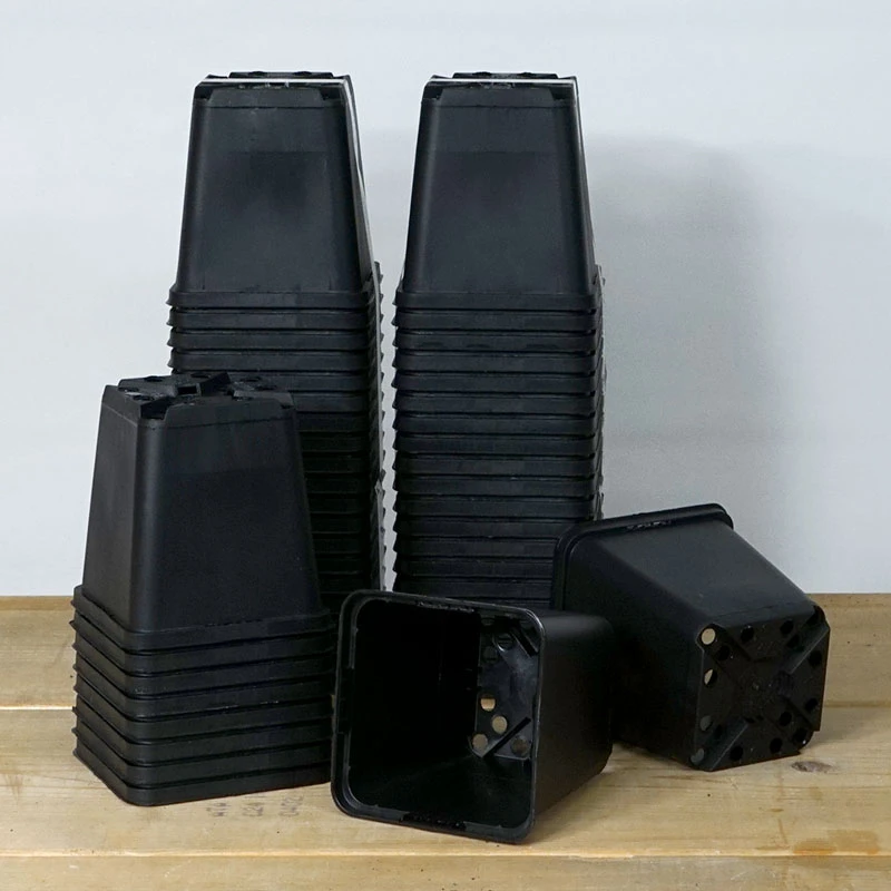 Suveräna plant- och perennkrukor i kraftig svart plast som går att återanvända under många säsonger. Krukorna är fyrkantiga vilket är praktiskt ur platssynpunkt.