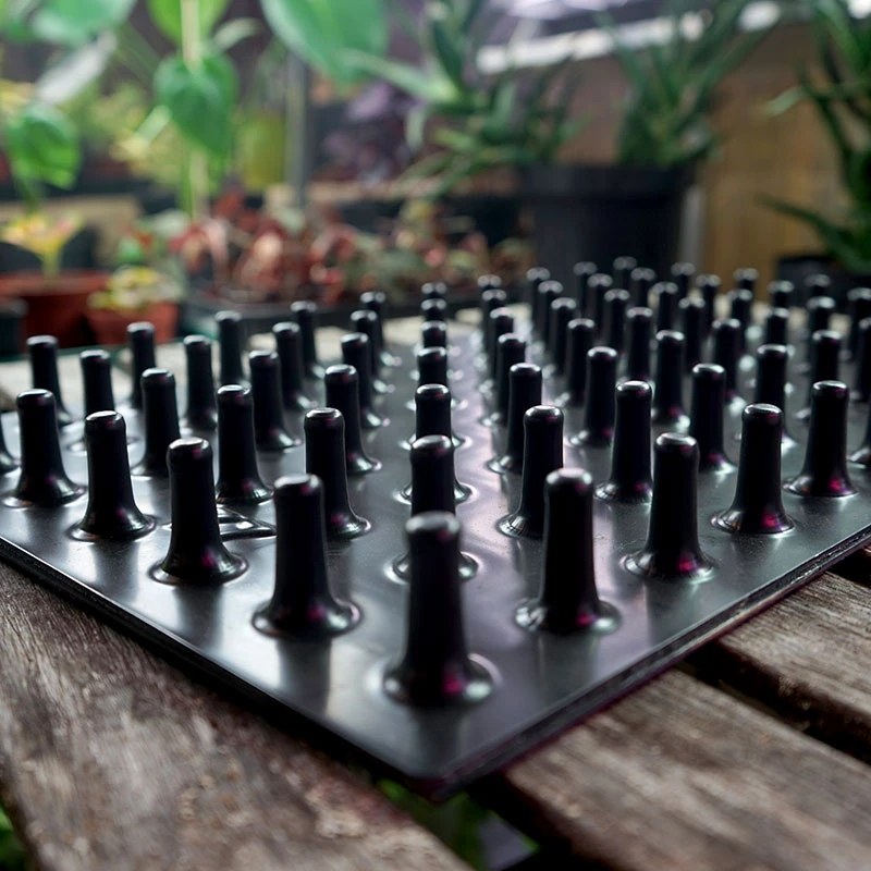 Uttryckningsplatta med 77 piggar för snabb och enkel avlÀgsning av vÀxter frÄn pluggbrÀtten med 77 celler.