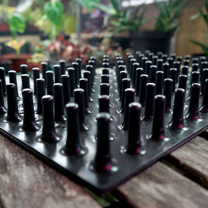 Uttryckningsplatta med 96 piggar för snabb och enkel avlÀgsning av vÀxter frÄn pluggbrÀtten med 96 celler.