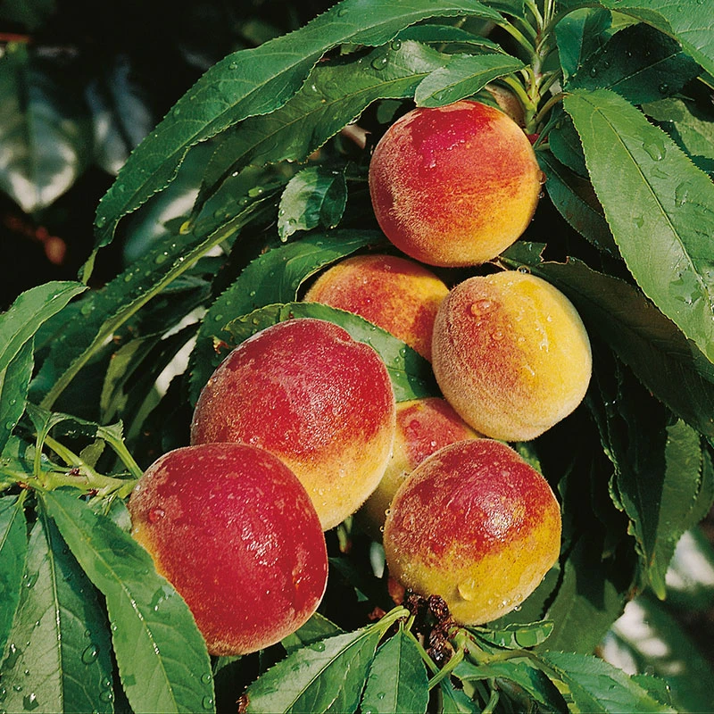 En persika som ger mycket goda och söta frukter med ludet skal och mjukt, saftigt fruktkött.