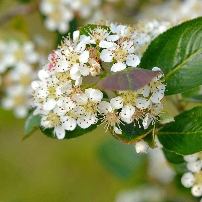 Den ger riklig blomning i maj/juni med gräddfärgade blommor och får svarta bär på hösten.